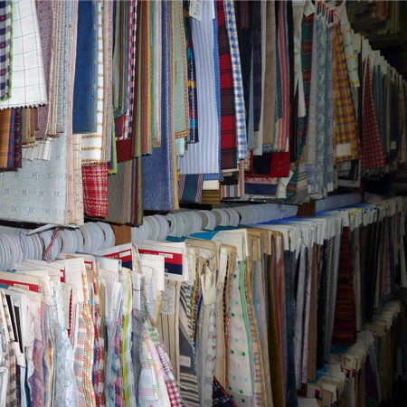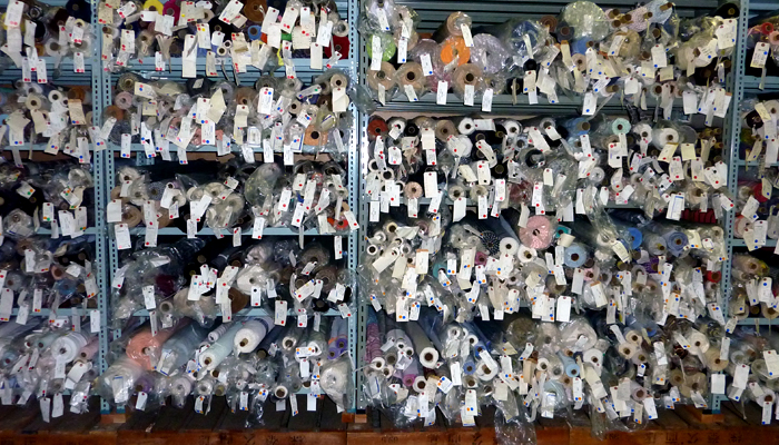 • 播州織産元業のパイオニア、株式会社泰久商店の倉庫の様子